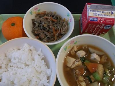 ごはん・牛乳・きんぴら丼・里芋の味噌汁・みかん