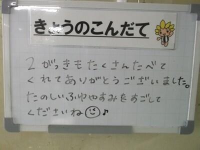 給食室からのメッセージ…ことらこそ…美味しい給食をありがとうございました。暑い日も…寒い日も…とっても美味しかったです(^^♪