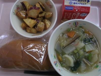 ソフトフランスパン・牛乳・五目すいとん・大学芋