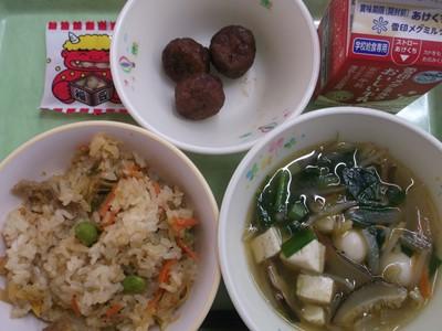 ご飯・牛乳・チキンチキンごぼう・五目スープ