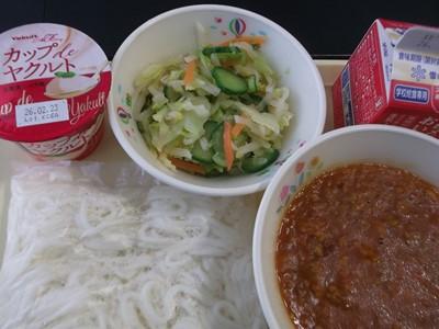 ソフト麺・牛乳・ソフト麺ミートソース・カミカミサラダ・ヨーグルト
