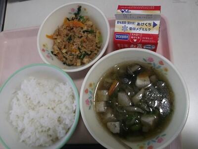 ごはん・牛乳・こまツナそぼろ丼・芋の子汁