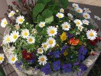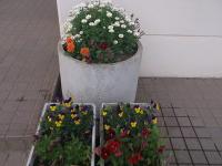 職員玄関前は、可愛らしいノースボール、パンジー、ネモフィラが咲きほこっています。
