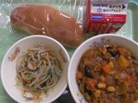 コッペパン・牛乳・豆と挽肉のインド煮・もやしのソテー
