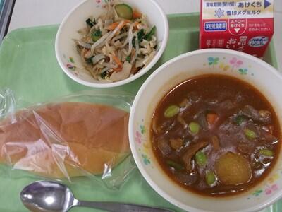 パンプキンパン・牛乳・ハンガリアシチュー・干ぴょうサラダ