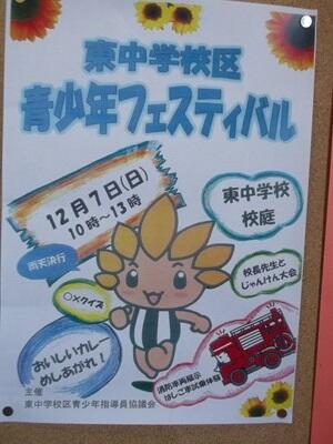東中学校区 青少年フェスティバルは12月7日(日)に開催です。本校の子ども達もたくさん参加するようで…参加用紙が届いていました。日曜日が楽しみですね(^^)/実行委員の皆様、お世話になります。宜しくお願いいたします。