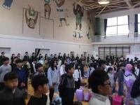 この3月で、先生方、支援員さん、調理員さん、用務員さん合わせて10名の教職員が、旭小学校を去ることになりました。「夢と平和の気持ちを大事に…」「皆の一つの行動が、未来を明るくすること…」「楽しみは自分で見つけること」去っていく先生方から、たくさんのお話を戴きました。子ども達は皆真剣に聴いていました。