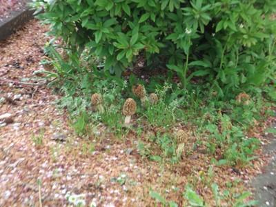 今年、工事中で桜の木の下には、誰も足を踏み入れることができませんでした。それだから…生えてこられたアミガサダケ。伸び伸びと育っているキノコをみて、色々考えました。