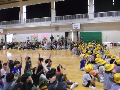4年生は体ほぐしの運動で、ウォーミングアップで音楽に合わせてダンスを踊ったり、蛇じゃんけんで身体一杯使ってじゃんけんしたり…笑顔で身体を動かすことを楽しんでいました。