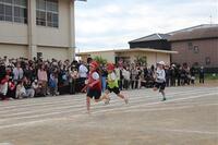 今年から復活の「全学年リレー」は、最高潮に応援が盛り上がる中、リレーの選手が力強く走り抜けました。