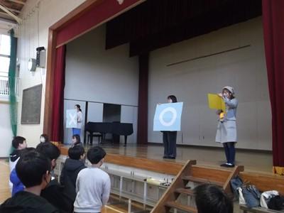 ↑ 15日(木)は、3学期最初の読み聞かせの時間でした。6年生は体育館に集まり、恒例になっている「本読み隊さんによるクイズ大会」に参加しました。6年生の担任の先生にまつわるクイズもあって…みんな、寒い中でしたが楽しそうに参加していました。