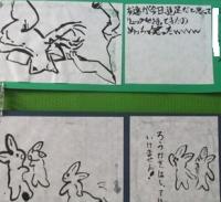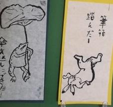 怒涛の時間が過ぎる中…6年廊下側掲示板では、墨絵のうさぎや蛙が笑っていました。忙しくも充実した4日間… 少し体調を崩している人も増えています。土日はゆっくり休んで、また月曜日に元気な顔を見せて欲しいです。