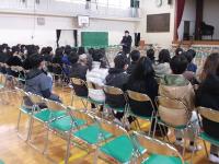 その後、異動される先生方から最後のお言葉がありました。「旭小学校では、皆さんの優しさを一杯感じました」「学校は好きな事を見付ける場所ですよ」「助けてと言える勇気を持ってください」「給食を残さず食べてくれることが…調理員さんの一番の喜びです。」心に残る言葉でした。
