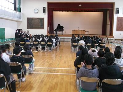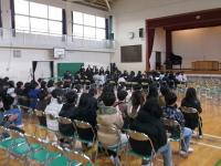 3月3日に行われた「6年生を送る会は」、1~5年生の発表のあと、全校の子ども達で校歌を歌いました。
