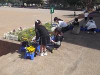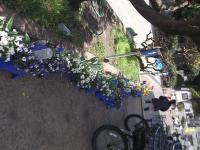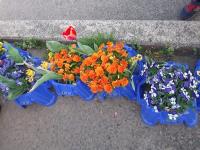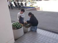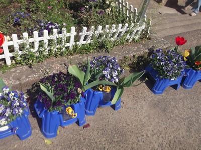 校門から入って、中央昇降口の辺りまで、2年生のビオラとチューリップ…花壇のサイネリアが心を和ませてくれます。
