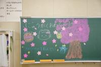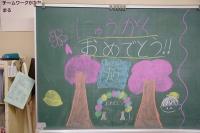 初めて教室に入った子ども達が、1年間ワクワクするように…安心するようにと、黒板に可愛らしいキャラクターや、温かな言葉が描かれていました。