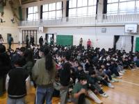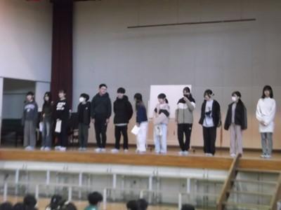 感染症予防としては、リモートでしたほうがよかったのですが…6年生の「直接皆に見て欲しい」という思いを受け止め、思い切り換気をしながら体育館で行いました。