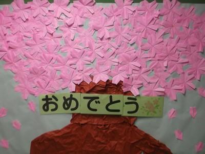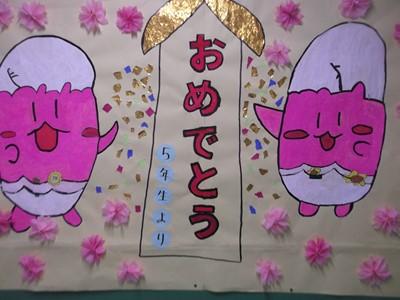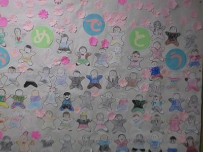 6年生の教室前の壁面は、各学年からの「おめでとうメッセージ」で一杯です。