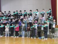 14日(水)2,3校時目に、富澤先生が来校され、5・6年生に合唱の指導をしてくださいました。地球星歌・COSMOS等、多くの合唱曲の編曲に携わっていらっしゃる先生を目の前に、子ども達は最初は緊張気味だったようですが…あっという間に先生のご指導に引き込まれ…1時間後には、澄んだ温かく心に響く素晴らしい歌声に変わっていたそうです。