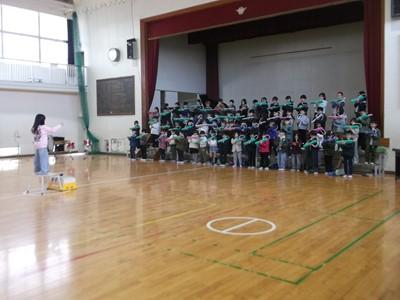 感染症予防としては、リモートでしたほうがよかったのですが…6年生の「直接皆に見て欲しい」という思いを受け止め、思い切り換気をしながら体育館で行いました。