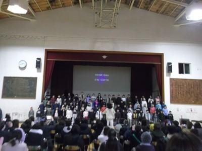 感染症予防としては、リモートでしたほうがよかったのですが…6年生の「直接皆に見て欲しい」という思いを受け止め、思い切り換気をしながら体育館で行いました。