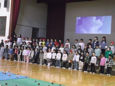 今年は、虹・星一緒の「ありがとうを伝える会」をテーマに、合同で行いました。低学年の合奏「夢を叶えてドラえもん」高学年の合唱「カントリーロード」4年生の「島人宝」…