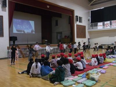 「くじらぐも」の音読に合わせて、旭小の1年生が元気いっぱいにジャンプ!