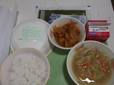 久しぶりのソフト麺(^^)/給食で楽しみな一品です。油揚げや鶏肉、お野菜が入った「きつねうどん」を思わせるあんの中に、少しずつソフト麺をちぎって入れる時、溢れないかいつもドキドキします。味噌ポテトはお味噌とお砂糖の味付けが絶妙で美味しかったです。給食の温かさが一層嬉しい季節になりました。ご馳走様でした(^^)v