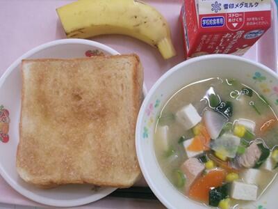 シナモン揚げパン 石狩汁 バナナ 牛乳