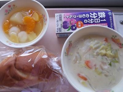 ミルクパン・発酵乳・白菜のクリーム煮・フルーツ白玉