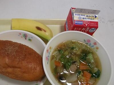 シナモン揚げパン・牛乳・肉団子スープ・バナナ