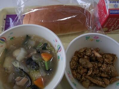 ちゃんこ鍋風…ちゃんこ汁。野菜、お肉と具がたっぷり、栄養たっぷりのお汁でした。フワフワの肉団子に感動です。ラスクはパンのミミが固くて、噛む事をしっかり意識するために良いメニューでした。今週も給食室の皆さんのお陰、座間の農家さんのお陰で美味しい給食を戴くことができました。ご馳走様でした(*^^*)