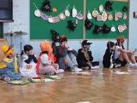 30日(木)3・4校時、虹星組は多目的室で「ハロウィンパーティ」をしていました。この日の為に仮装の計画を立て、自分で手作りしたり、お家から持ってきたり、先生からも借りたりしてみんな素敵な格好をしていました。ファッションショーの時にはレッドカーペットを歩くかのように得意げな子や、少し照れながら歩く子や…色々でしたが、みんな拍手をもらって嬉しそうにしていました。