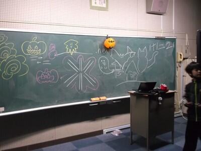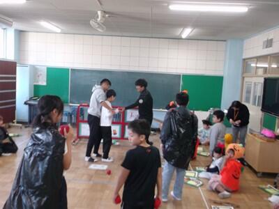 6年生は、視聴覚室を暗くしてゲームを楽しんでいました。「仮装は出来ない人もいるからしない」と…色々試行錯誤していた様子もうかがえました。