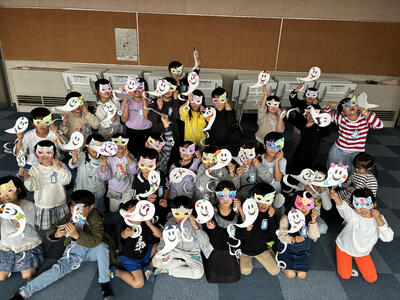 1年生は自分で作ったお面と、お化けのコスチュームで、とっても楽しそうでした。