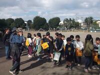 1年生の草取りの時間に、少しお邪魔しました。ビニール袋を持って軍手をして、校庭周りに広がりました。