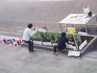 校庭の花壇のお花は、SSSさんがコスモスの苗?を植え替えてくれました。寒い中…綺麗なコスモスが咲くのももうすぐです。