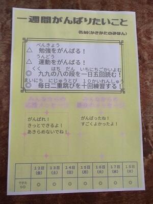 自分で目標をたて、期間中に取り組むことをカードに書き、友達に応援メッセージを貰いChallengeします。毎日自分でチェックをして…18日に児童会室に持って行くと、素敵なプレゼントを貰えるようです。