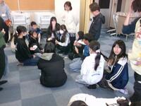 ↑ 学校が避難所になった時に、体育館は仮設避難所になります。簡易テントをみんなで力を合わせて立ててみました。冬の体育館は空気が冷たくて、シートを敷いても寒さが下から漂ってくることも、体感したようです。