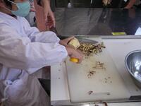 みんなで育てたサツマイモを、虹組みんなで調理しました。ピーラーで皮をむくのは子どもの仕事。その後包丁で芽を取るのは先生の仕事…きれいになったお芋をレンジで温めた後、潰して丸めて「スウィートポテト」にしてくれました!(^^)!「ちょこっと余りのキャンディーポテトが美味しかった(*^-^*)」と…こっそりつまんで食べたのも、いい思い出になりそうです。